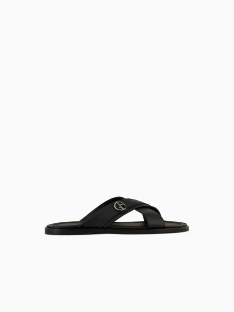 Pebbled-leather cross sandals