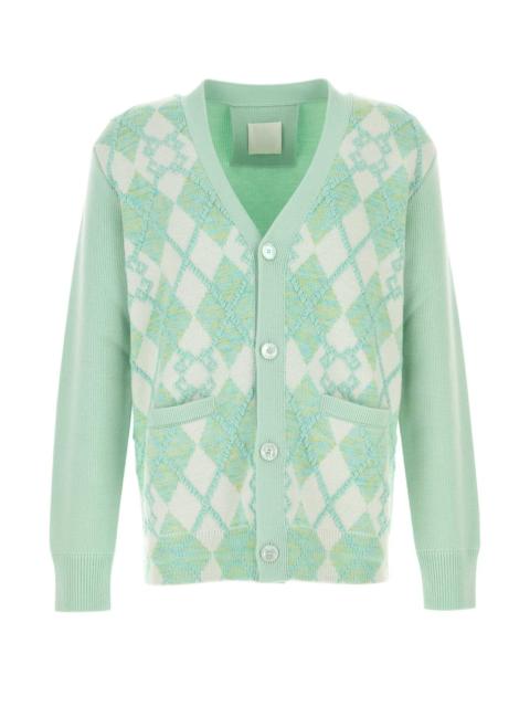 Givenchy Men Pastel Green Wool Blend Cardigan
