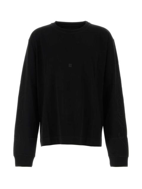 Givenchy Men Black Crewneck T-Shirt With Embossed Logo On Front In Cotton Man