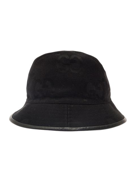 Gucci Men Black Bucket Hat With Leather Trimmings In Gg Jumbo Canvas Man
