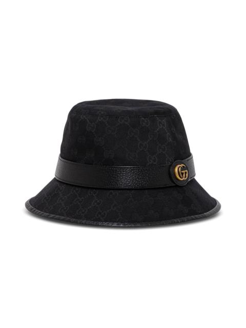 Gucci Men Black Bucket Hat With Leather Trimmings In Gg Jumbo Canvas Man
