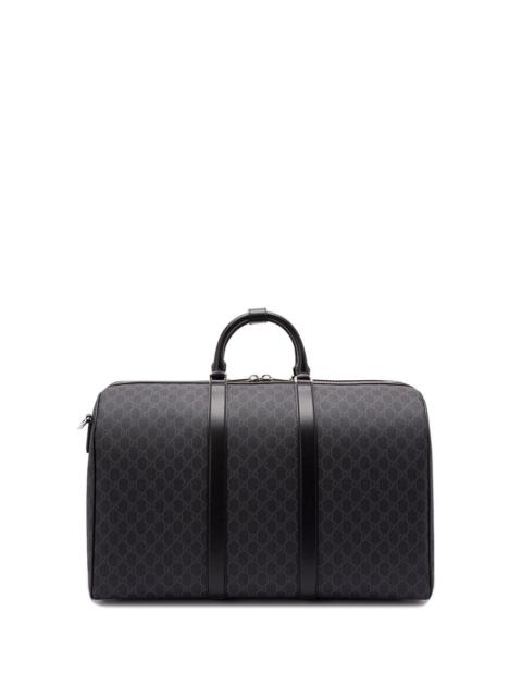 Gucci Medium Duffle Bag With Web Detail In Beige And Ebony Gg Fabric Men