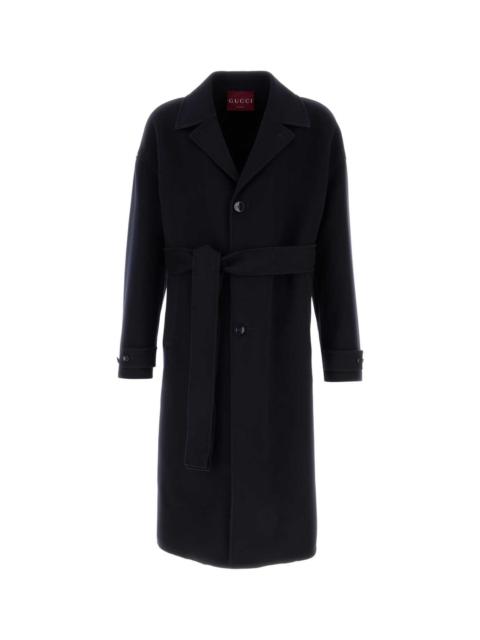 Gucci Men Black Single-Breasted Coat With Wide Notched Revers And Belt In Wool Man