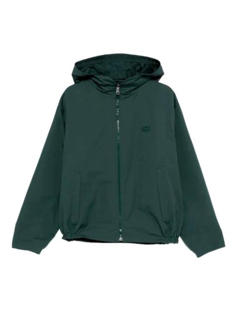 Gucci Men Grey Hooded Jacket With Logo Embroidery On The Front In Wool Man