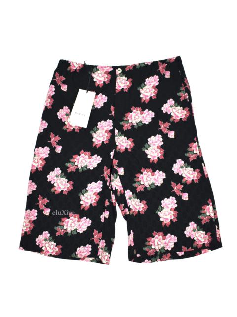 Gucci Black GG Monogram Peony Blooms Print Silk Shorts NWT