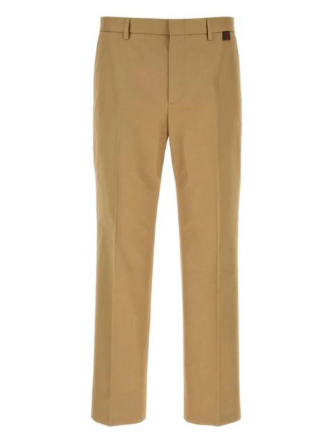 Gucci Men Beige High-Waisted Pants With Logo Patch In Cotton Man