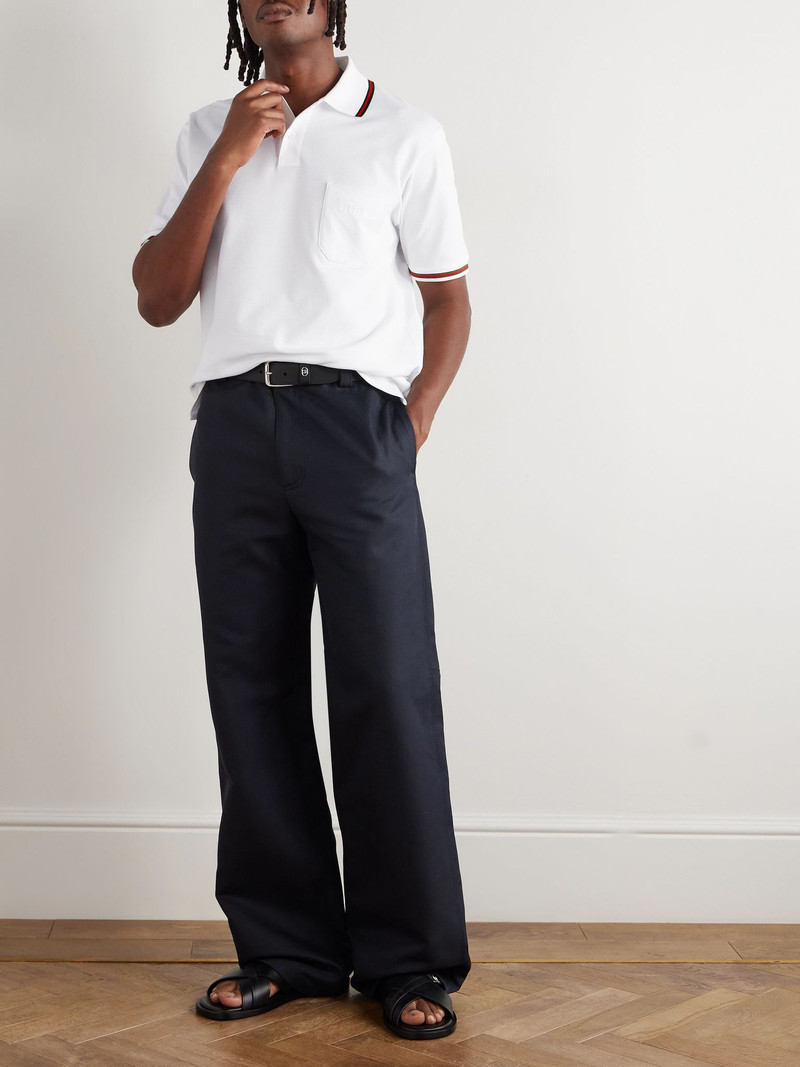 Logo-Embroidered Cotton-Blend Piqué Polo Shirt White