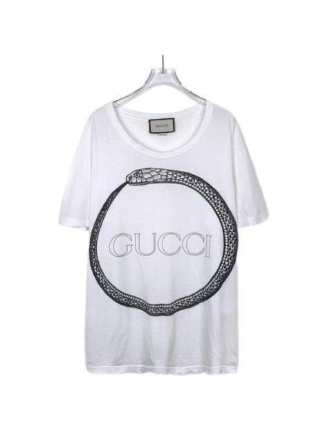 - GUCCIGucci White Ouroboros T-Shirt XXL Cotton Mens Crewneck Logo Print