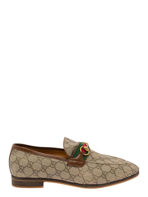Gucci Men 'Paride' Beige Loafers With Horsebit And Web Detail In Gg Supreme Canvas Man