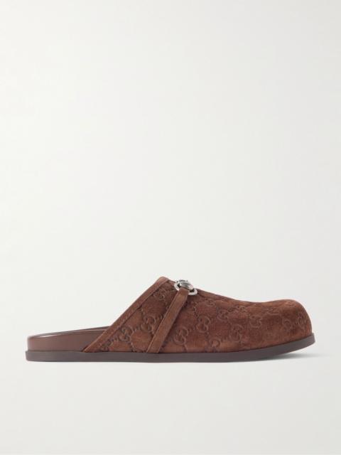 Rhein Horsebit-Embellished Leather-Trimmed Denim Mules