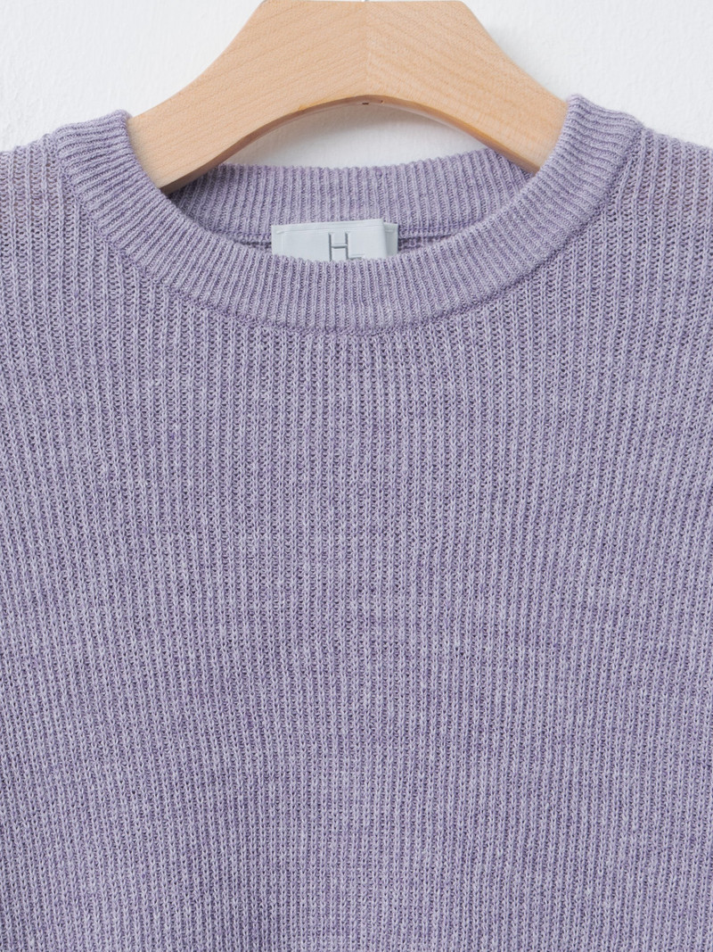 Linen/Cotton Ribstitch Crewneck Knit - Lavender