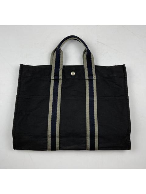 VINTAGE HERMES PARIS COTTON FABRIC TOTE BAG