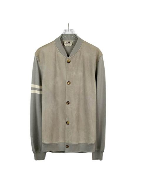 Hermès Mens Suede & Knit Varsity Bomber Jacket Gray Beige Size L Made In Italy