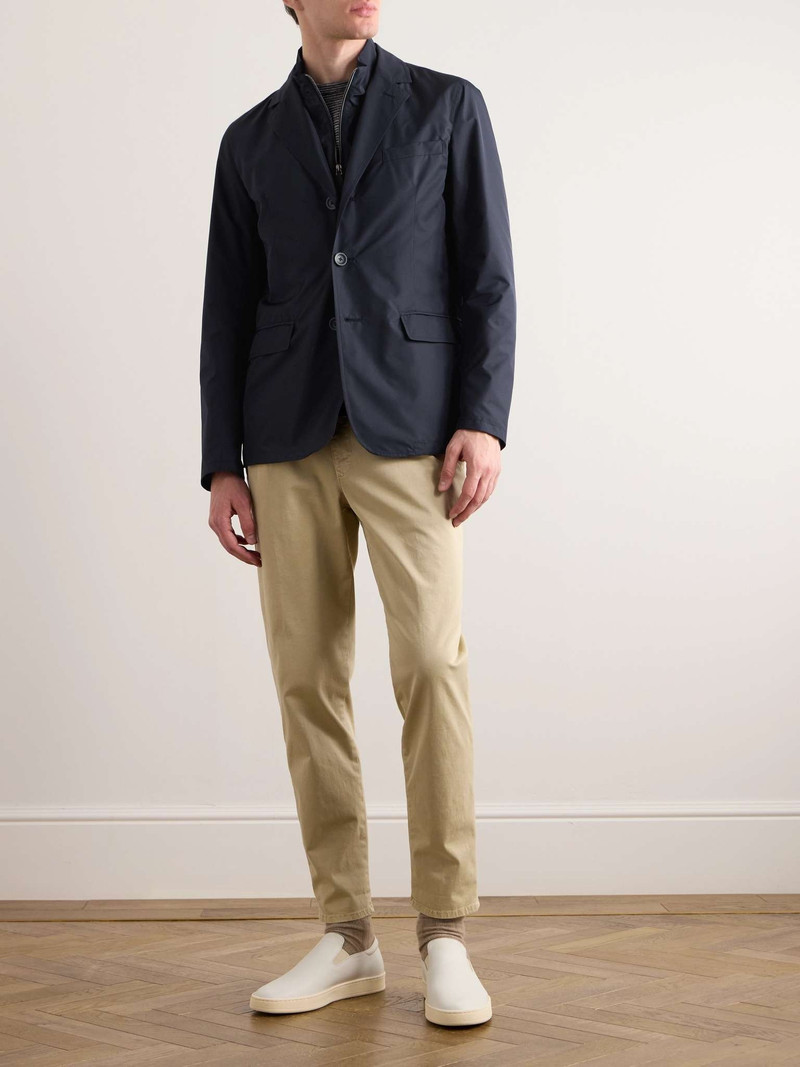 Plush-Trimmed Quilted Twill Down Jacket Navy