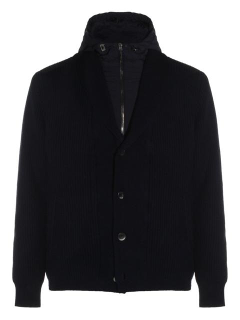 Quilted Cotton-Corduroy Hooded Down Jacket Navy