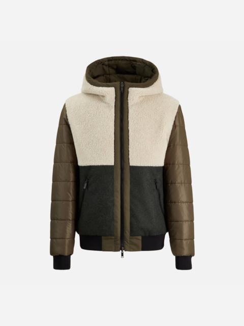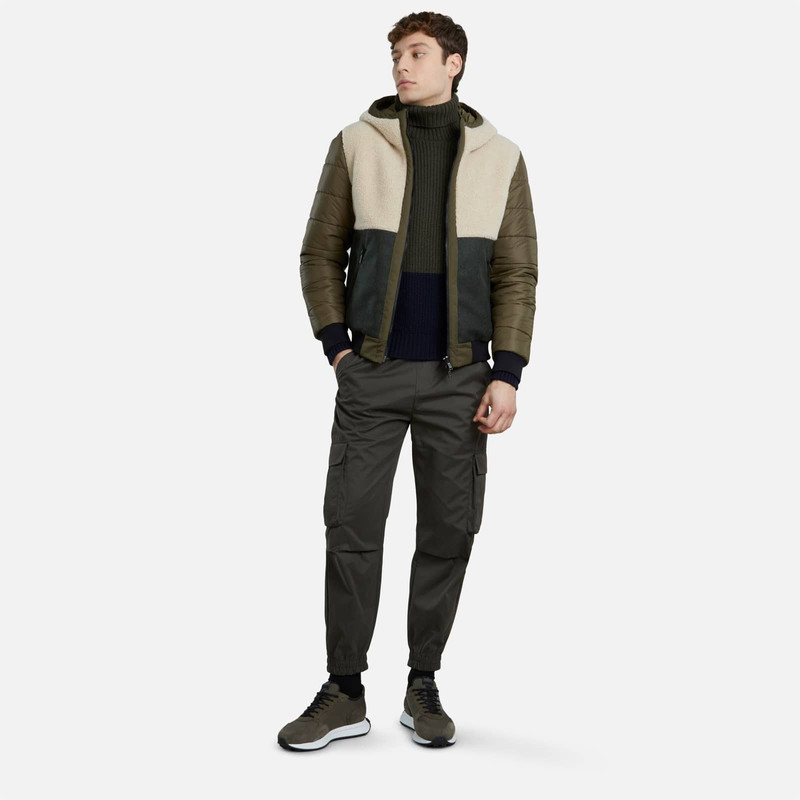 Multimaterial Reversible Bomber Jacket Green Ivory