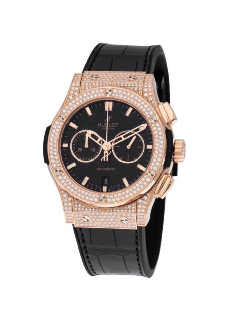 Hublot Classic Fusion Black Dial Black Leather Band 18 Carat Rose Gold with Diamonds Case Automatic