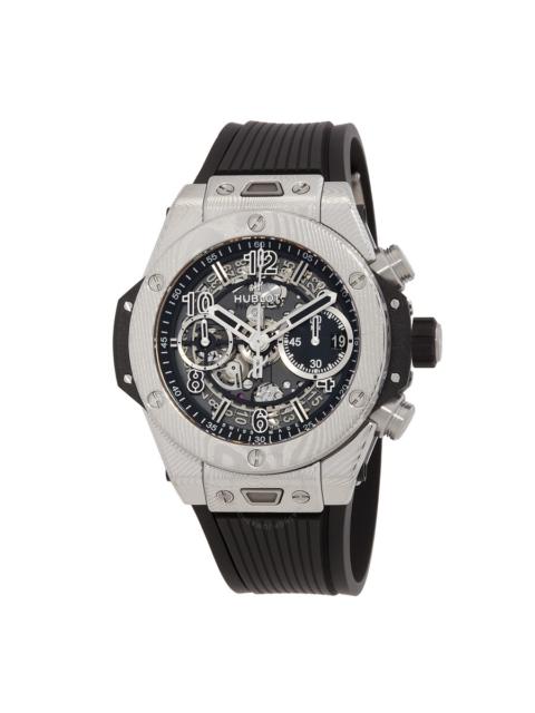 Pre-owned Hublot Big Bang Unico Chronograph Black Skeleton Dial Men's Watch 402.QU.0113.WR