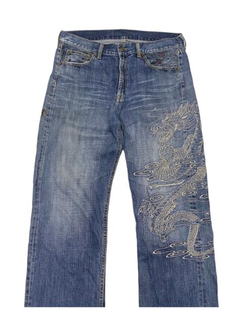 🔥🐉JAPANESE DRAGON EMBROIDERY DISTRESSED DENIM JEANS