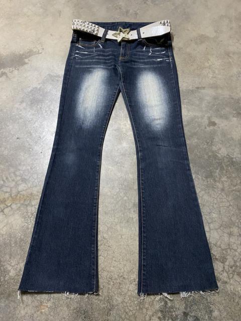 Flare Jeans Japanese Grunge Belt Blacky Blue Low Rise