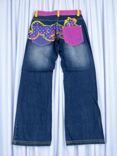 Lolita Wide Leg Muddy Embroidery Studded Flare Denim Pants