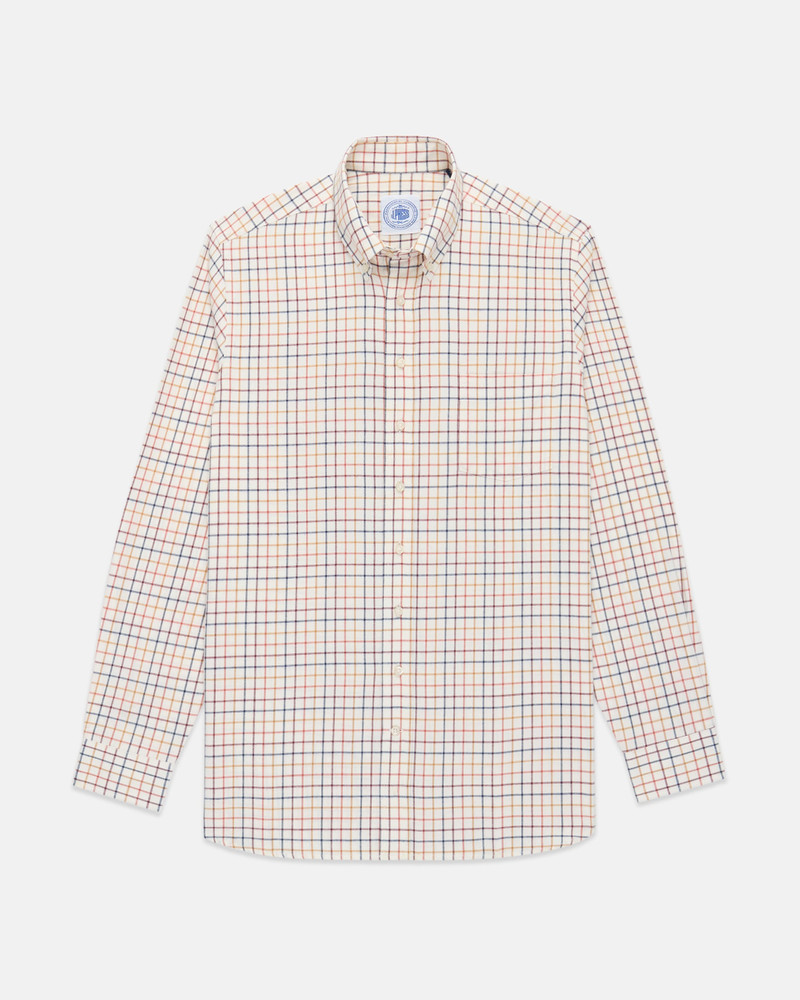 TAN, RUST, BURGUNDY & NAVY TATTERSALL COTTON FLANNEL BUTTON DOWN SPORT SHIRT - CLASSIC FIT