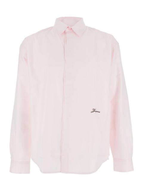 Jacquemus Men 'Simon' Pink Shirt With Logo Lettering On The Front In Cotton Man