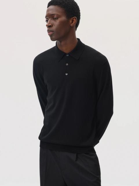 Merino Long Sleeve Black Polo Shirt