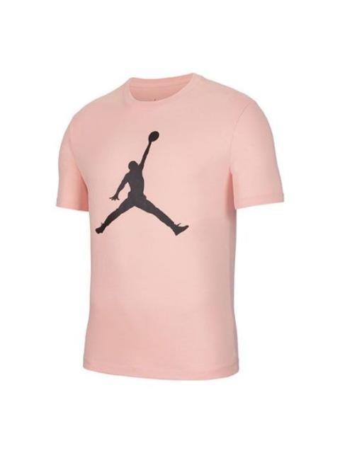 Men's Air Jordan Solid Color Alphabet Logo Printing Round Neck Short Sleeve Pink T-Shirt DO6100-604