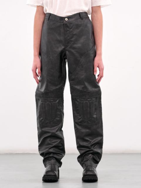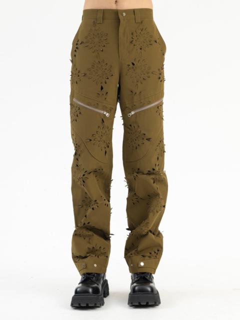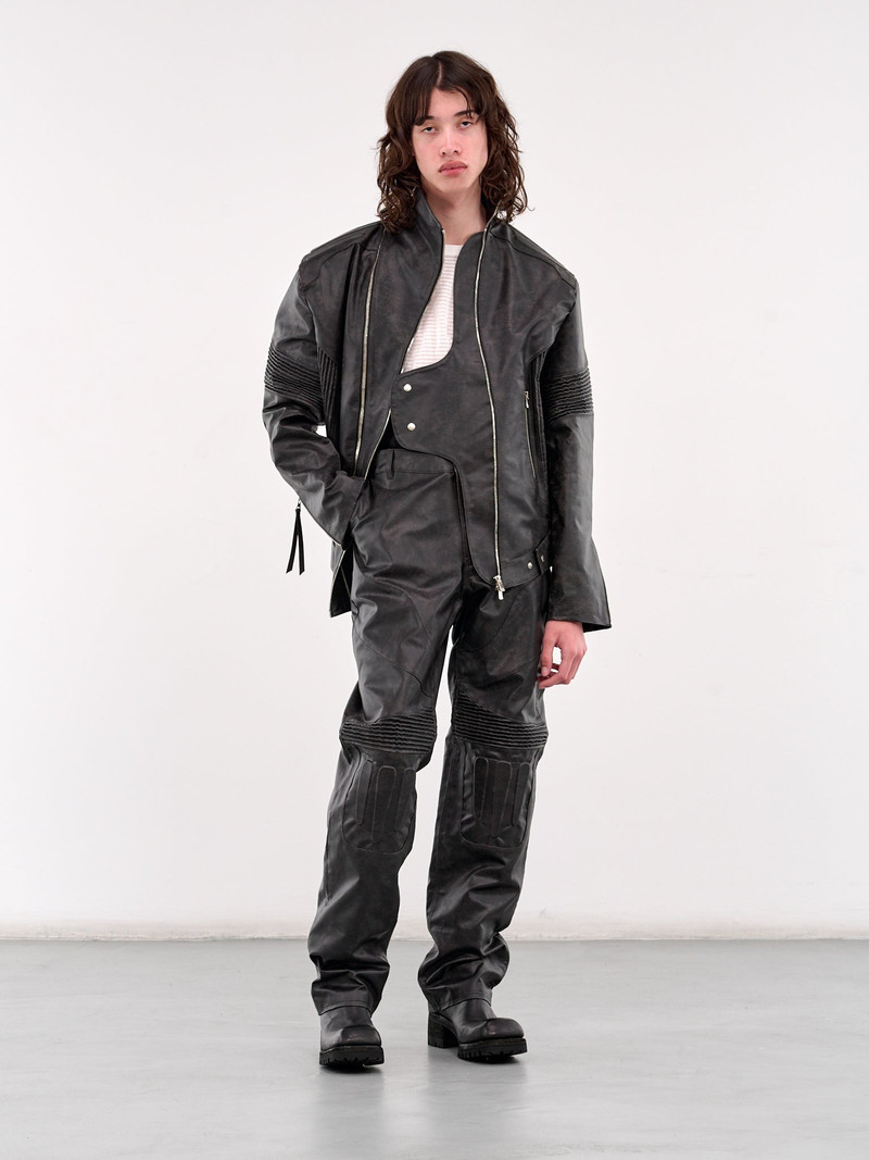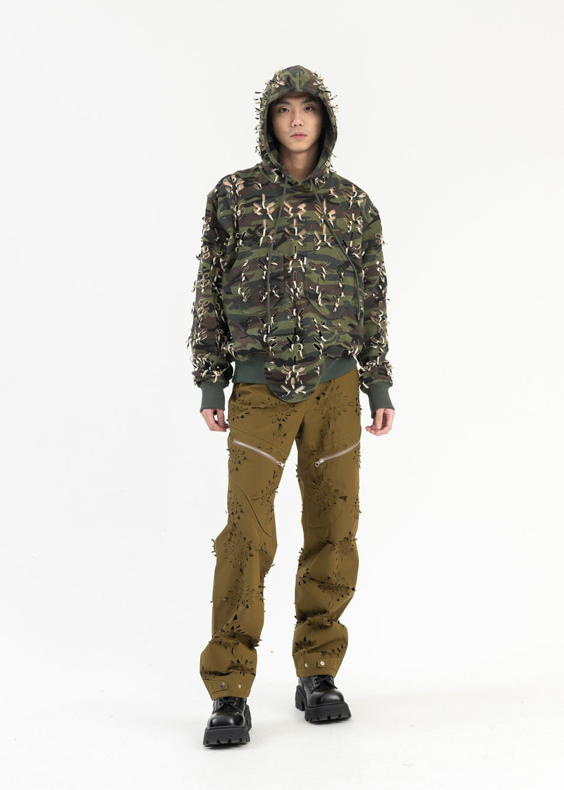 Juntae Kim, a Seoul-based gender-fluid label founded in 2021 by Central Saint Martins graduate Juntae Kim, reinterprets the incompatibility between historical women's silhouettes and modern men's clothing. The brand combines traditional craft techniques with contemporary methods to create gender-fluid garments that juxtapose ‘70s punk and classic tailoring. Known for carefully placed details and heavy-duty textiles, the collections feature zippers, slashes, bow appliqués, and cutouts, softening denim, nylon, and jersey. Western-style yokes, cinch straps, Cuban-heeled boots, and signature berets add to the brand’s unique stylistic vision, disrupting contemporary menswear with a bold, anachronistic approach.