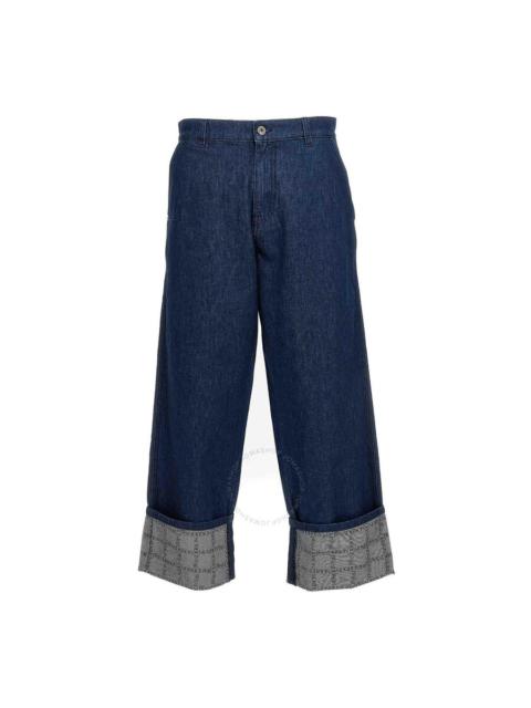 JW Anderson Men's Indigo Logo Grid Turn Up Workwear Jeans