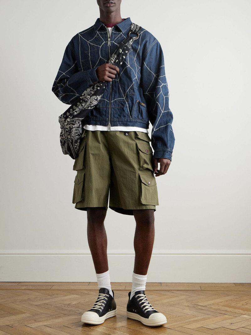 Boro Distressed Patchwork Cotton and Linen-Blend Zip-Up Jacket Blue