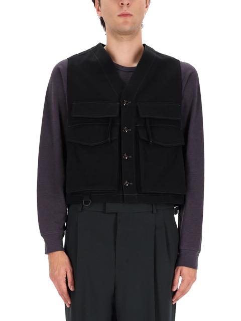Lemaire Black Asymmetric Wool-Blend Cardigan Men