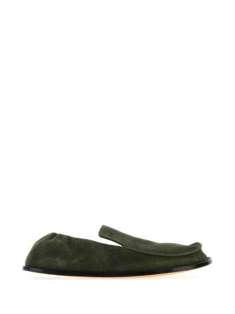Loewe Men Olive Green Suede Flex Loafers