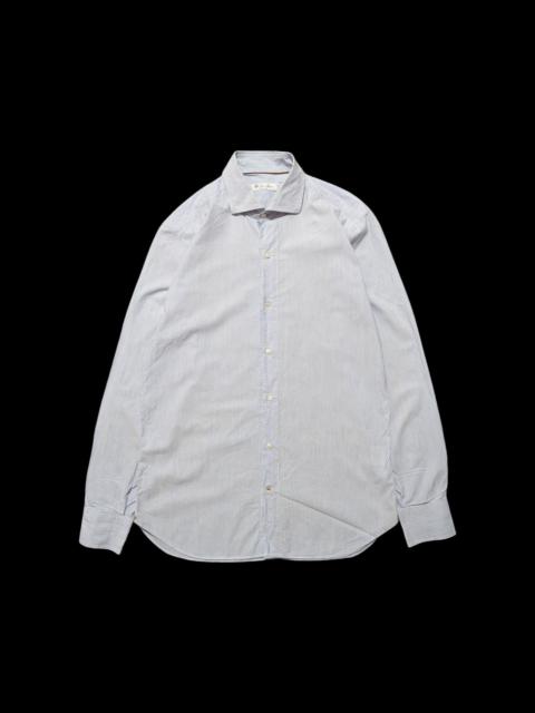 Loro Piana Shirt Button Up White Blue Stripped Cotton 40