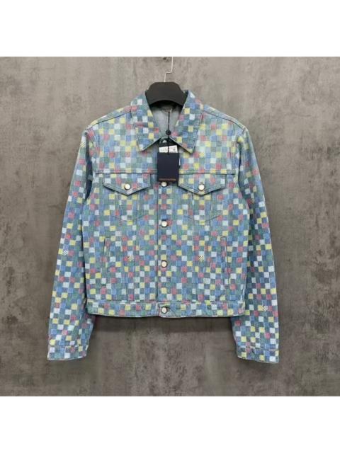 Louis Vuitton's latest 2025 collection: Checkerboard pattern denim jacket with all-over logo print.