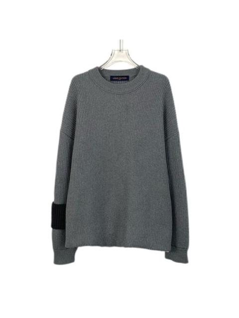Louis Vuitton Gray Wool Ribbed Sweater With Black Elbow Patch & Back Logo Mens