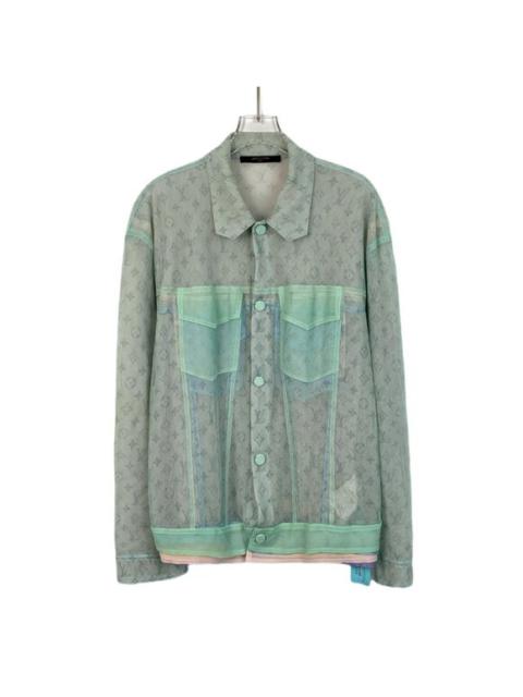 Louis Vuitton Sheer Monogram Jacket Mens Button-Up Size 50 Mint Green Polyamide