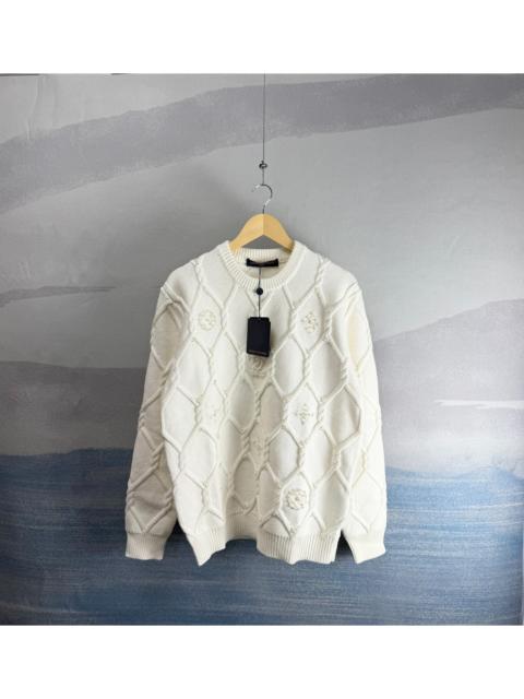 Louis Vuitton LV white thistle pattern floral knit sweater