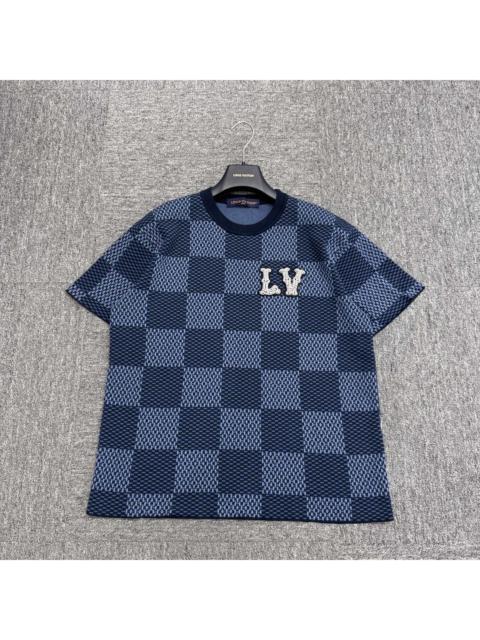 Louis Vuitton LV Black and Blue Checkerboard Short Sleeve