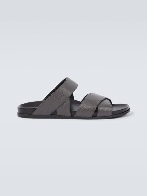 Chiltern Leather-Trimmed Raffia Sandals Beige