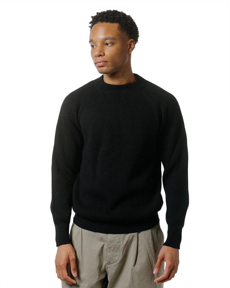 Simple Rib Crew Neck Cotton Wool Black