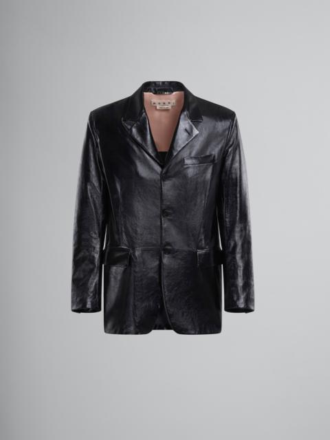 BLACK SINGLE-BREASTED BLAZER IN ULTRALIGHT NAPLAK LEATHER