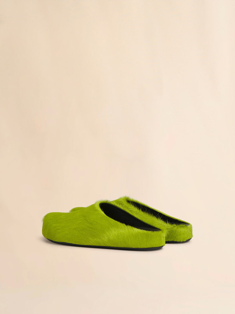 GREEN LONG HAIR CALFSKIN FUSSBETT SABOT