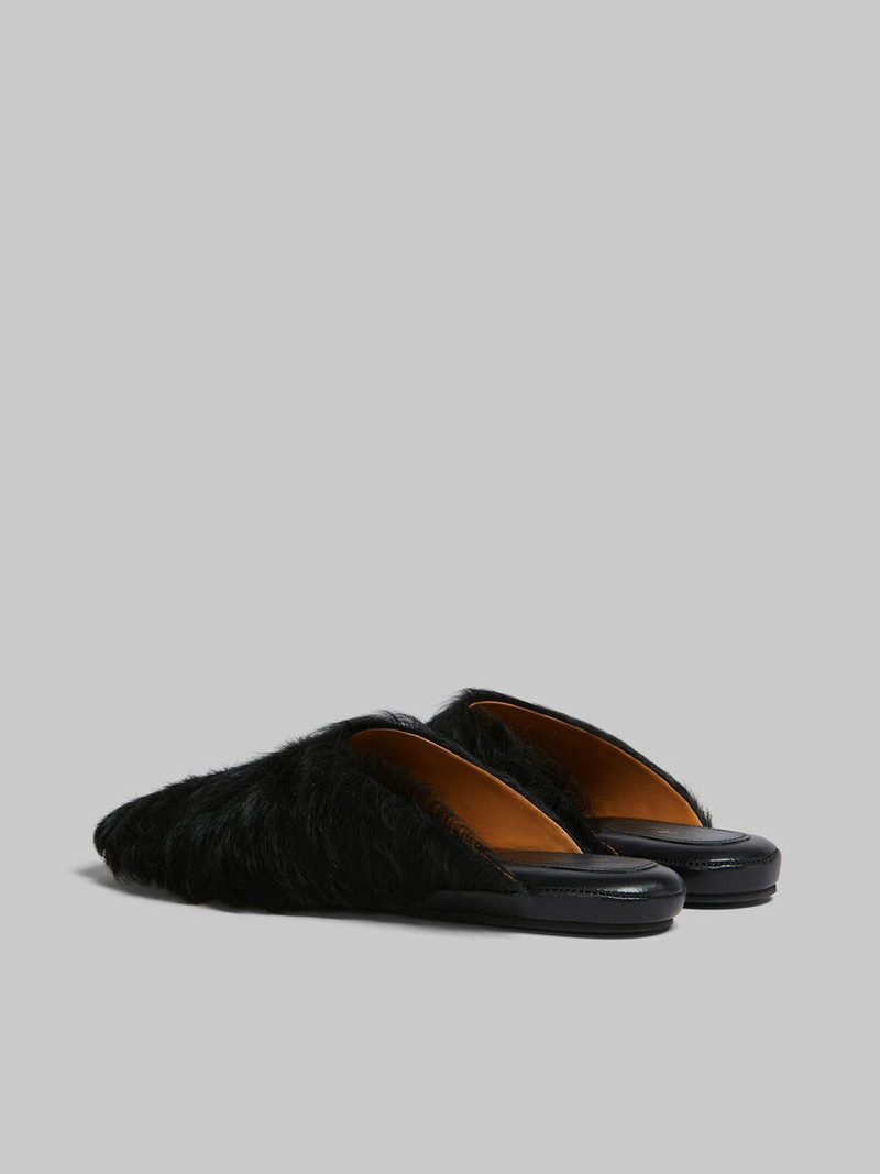 BLACK LONG-HAIR CALFSKIN SABOT