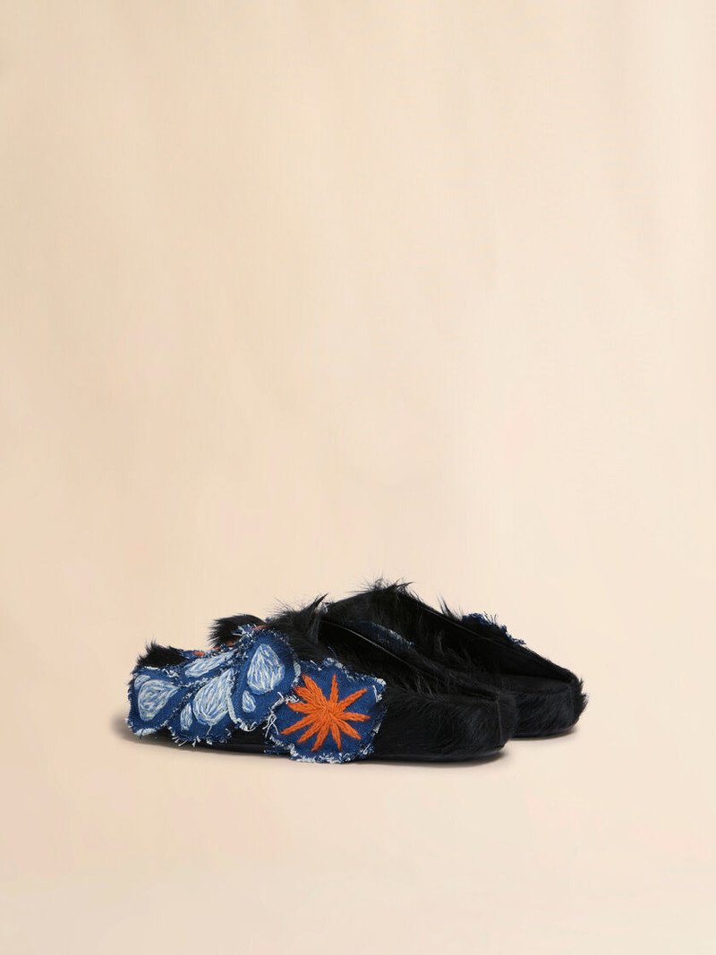 BLACK LONG HAIR CALFSKIN FUSSBETT SABOT
