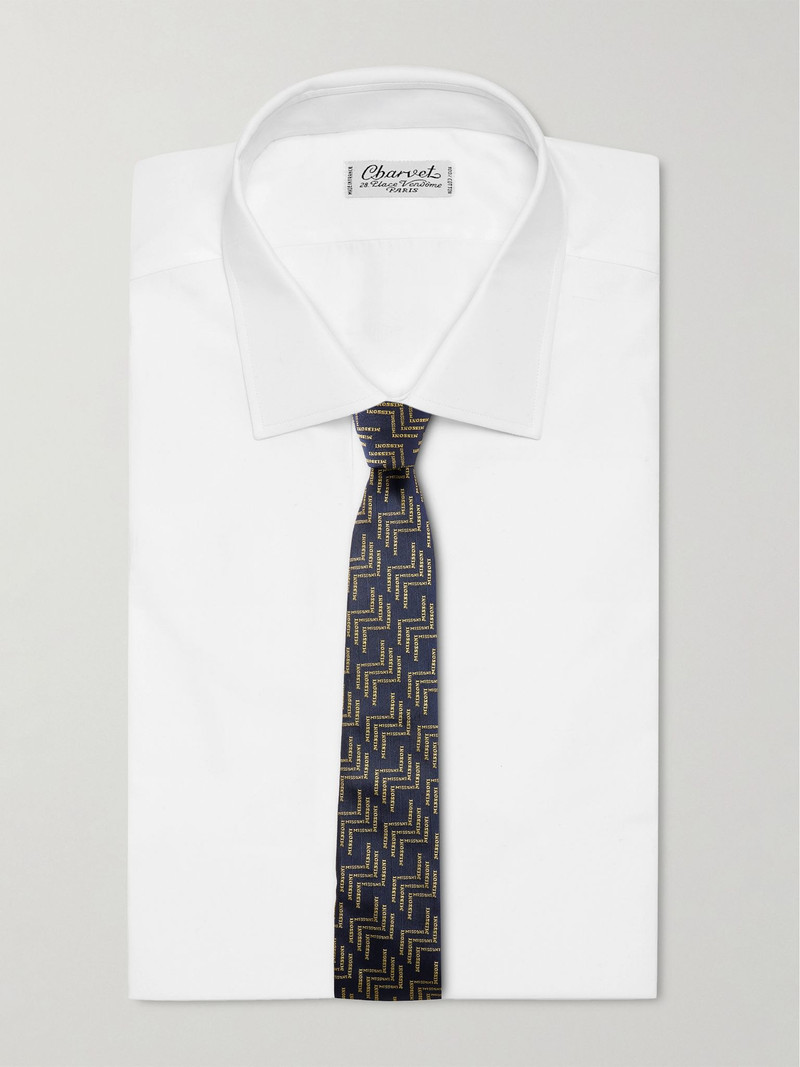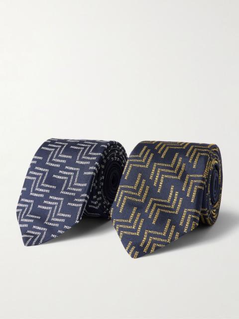 Set of Two 7cm Logo-Embroidered Silk-Jacquard Ties Blue