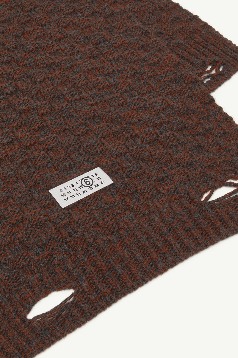 Elevate your accessory game with MM6 Maison Margiela scarves, a standout in our exclusive collection of men's accessories. Each scarf by MM6 Maison Margiela embodies the brand's avant-garde aesthetic and attention to detail, ensuring both style and comfort. Discover the perfect blend of innovative design and high-quality fabrics, meticulously crafted for the modern man. Explore our selection of scarves that are not just accessories but statements, sourced from authorized retailers.