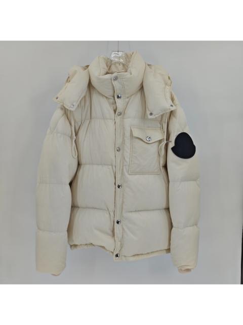 Moncler Cream White Hooded Down Jacket with Black Label Armband
