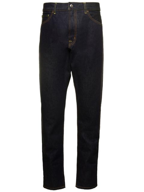 Moncler Genius Men Blue Five-Pocket High-Waisted Jeans With Logo Patch In Cotton Denim Man